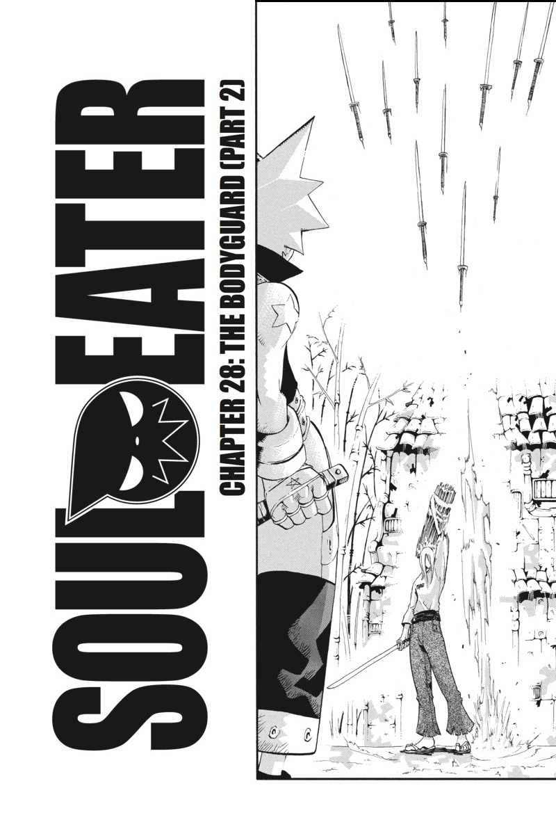 The Bodyguard (Part 2) is the twenty-eighth serialized chapter of the manga Soul Eater. It was reprinted in tankōbon form in Volume 8. It was adapted as part of Episode 28, The Sword God Rises - Does it Have a Sweet or Salty Taste? in the Soul Eater anime.